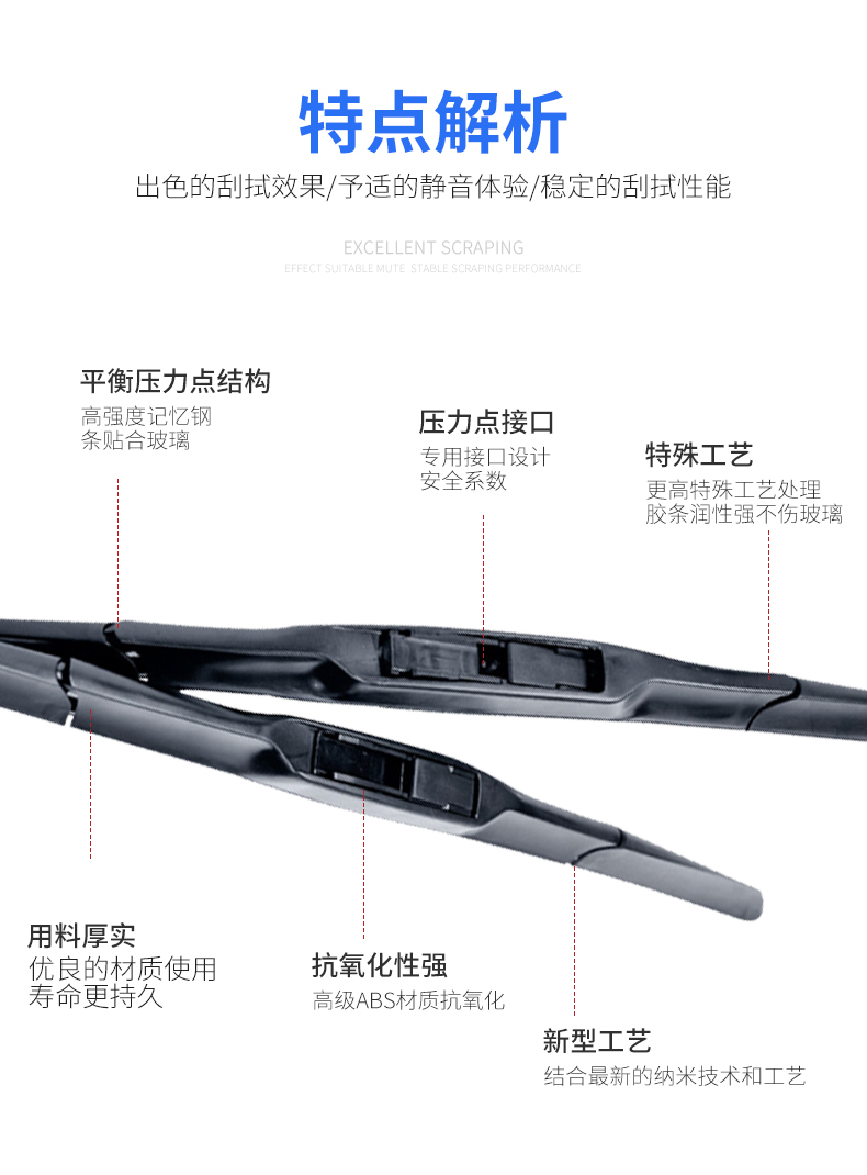 本公司產(chǎn)品涵蓋通用無(wú)骨雨刷、多功能一體雨刷、專車專用定制雨刷、雪刷等。我司產(chǎn)品外觀款式設(shè)計(jì)別具風(fēng)格,特別在硅膠膠條方面,歷經(jīng)二十多年的研發(fā)改良,有著獨(dú)特的開(kāi)發(fā)和應(yīng)用經(jīng)驗(yàn),在大中華區(qū)域獨(dú)樹(shù)一幟。